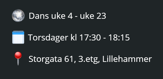 Passer gutter som ønsker å bevege seg til musikk! Timen varer i 45 minutter og vi danser blant annet hip hop, breaking, freestyle discojazz, samt danseleker og hinderløype.